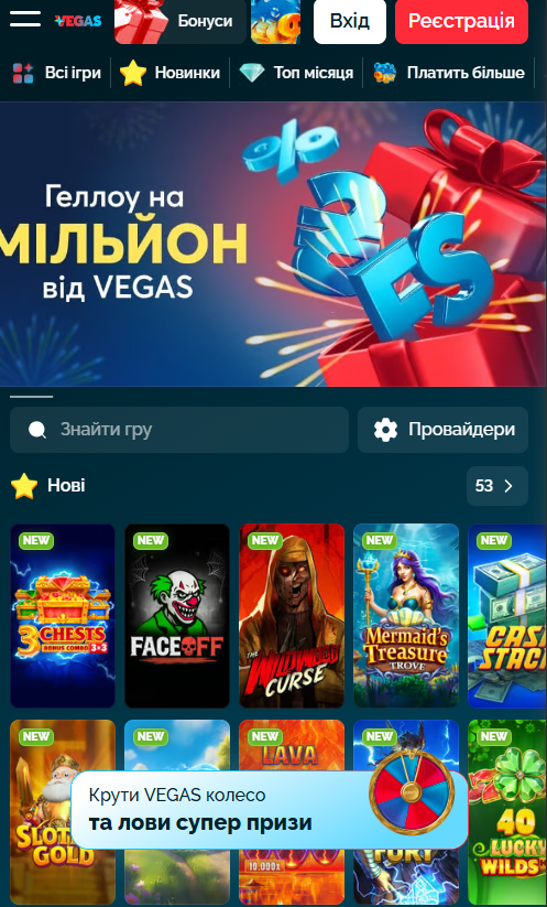 Промокод Vegas.ua VEGVC 2026 Опубліковано на 26 December 2025 | Змінено на 1 February 2026 Промокод Vegas.ua у 2026 році дає змогу отримати 150% бонус до 15 000 ₴ та 100 фріспінів для нових гравців. Бонус активується автоматично при переході з офіційного сайту Vegas.ua — вводити код вручну не потрібно. Відповідальна гра: матеріал 21+. Viche.info — інформаційний сайт і не приймає ставок та не надає ігрових послуг. Азартні ігри можуть викликати залежність. Детальніше — Відповідальна гра. Як ми оцінюємо операторів: Методологія оцінювання. Viche.info може отримувати партнерську комісію, якщо ти переходиш за посиланнями на сайти операторів. Це не впливає на наші огляди, рейтинги або редакційні висновки. Регулятор: PlayCity • Держорган: gc.gov.ua. 🎯 Промокод Vegas.ua 2026 – як активувати код для бонусу Сьогодні промокод Vegas.ua активується автоматично під час реєстрації — вводити нічого не потрібно. Для нових гравців діє вітальний пакет із 150% бонусом на депозит та бездепозитним подарунком після створення акаунту. Тип бонусуУмовиМаксимумБездепозитний бонус77 фріспінів одразу після реєстрації≈ 300 ₴ еквівалентомПерший депозит150% бонус + 100 фріспінівдо 15 000 ₴Кешбек10% щотижня на програні коштидо 5 000 ₴ Мінімальний депозит — 100 ₴ • Вейджер x35 для бонусів, x30 для фріспінів • Оновлено: February 2026 💡 Як активувати бонус Vegas.ua Перейдіть на офіційний сайт Vegas.ua. Натисніть кнопку «Реєстрація». Заповніть коротку форму: e-mail, пароль, валюта (₴). Підтвердіть телефон або пошту. Отримайте бездепозитні фріспіни, а після першого депозиту — 150% бонус. 🪙 Умови відіграшу Vegas.ua має стандартні умови для бонусних коштів: 🎯 Вейджер: x35 для грошових бонусів, x30 для фріспінів; 🕓 Термін відіграшу — 7 днів після активації; 💸 Максимальна ставка — 100 ₴ під час відіграшу; 🎮 Відігравати можна лише на слотах із RTP понад 95%. 🪙 Як працює промокод Vegas.ua Промокод VEGVC активується під час реєстрації або при першому депозиті.Код відкриває доступ до вітального пакета, що складається з грошового бонусу та фріспінів.Після активації ти отримаєш на баланс: 💰 150% до 15 000 ₴ на перше поповнення; 🎰 100 фріспінів на популярних слотах Pragmatic Play; 🕓 Термін дії — 7 днів від дати нарахування. Код працює як у десктопній, так і в мобільній версії казино. Вводити його вручну не обов’язково — Vegas.ua застосовує його автоматично при переході з офіційного партнера Viche.info. 🎰 Найпопулярніші ігри для бонусу Бонуси Vegas.ua найкраще відігравати у сертифікованих слотах із високим RTP. Редакція Viche.info протестувала десятки ігор і склала короткий список найвигідніших варіантів: Назва гри RTP Провайдер Оцінка гравців Sweet Bonanza 96.48% Pragmatic Play ⭐ 4.8 / 5 Book of Dead 96.21% Play’n GO ⭐ 4.6 / 5 Elvis Frog in Vegas 96.0% BGaming ⭐ 4.5 / 5 Big Bass Bonanza 96.71% Pragmatic Play ⭐ 4.4 / 5 Дані базуються на тестах Viche.info (Жовтень 2026) та офіційних RTP від провайдерів. 🔐 Ліцензія та безпека Vegas.ua Vegas.ua належить компанії ТОВ «Вегас Україна» і працює за ліцензією КРАІЛ №512 від 2024 року. Казино проходить регулярні перевірки на прозорість і захист користувачів. Дані гравців шифруються за допомогою SSL 256-bit, а генератори випадкових чисел сертифіковані. 🆚 Vegas.ua порівняно з іншими казино України КазиноБонусФріспіниЛіцензіяVegas.ua150% до 15 000 ₴до 100 FSКРАІЛ №512BetKing.ua100% до 10 000 ₴100 FSКРАІЛ №150777.uaБездепозитний бонус77 FSКРАІЛ №245 🧠 Висновок редакції Viche.info Vegas.ua — це сучасне казино з бездепозитним бонусом і щедрим пакетом для новачків. Відсутність необхідності вводити промокод с